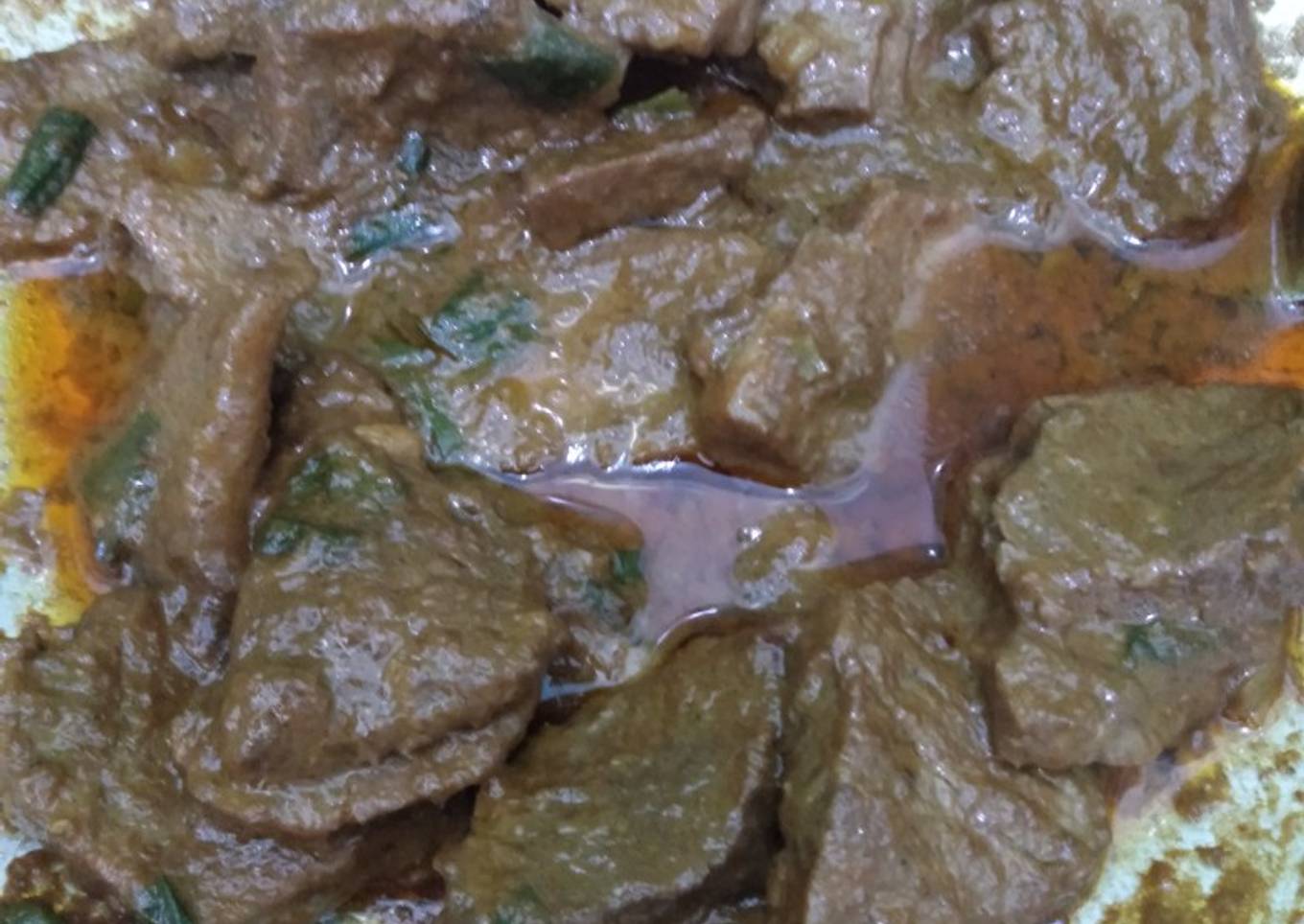 - Tumis bawang putih, bawang merah hingga layu lalu tuangkan air sisa rebusan daging tambhkan bamboe rendang aduk2 dan masukan daging.