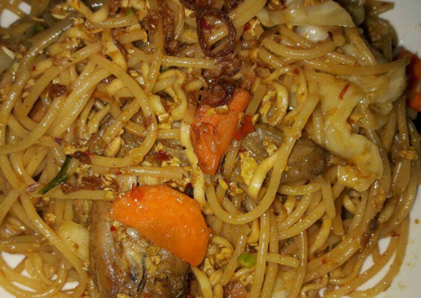 - 1/2 bungkus Spagetti Rebus dengan Air dan Sedikit Minyak