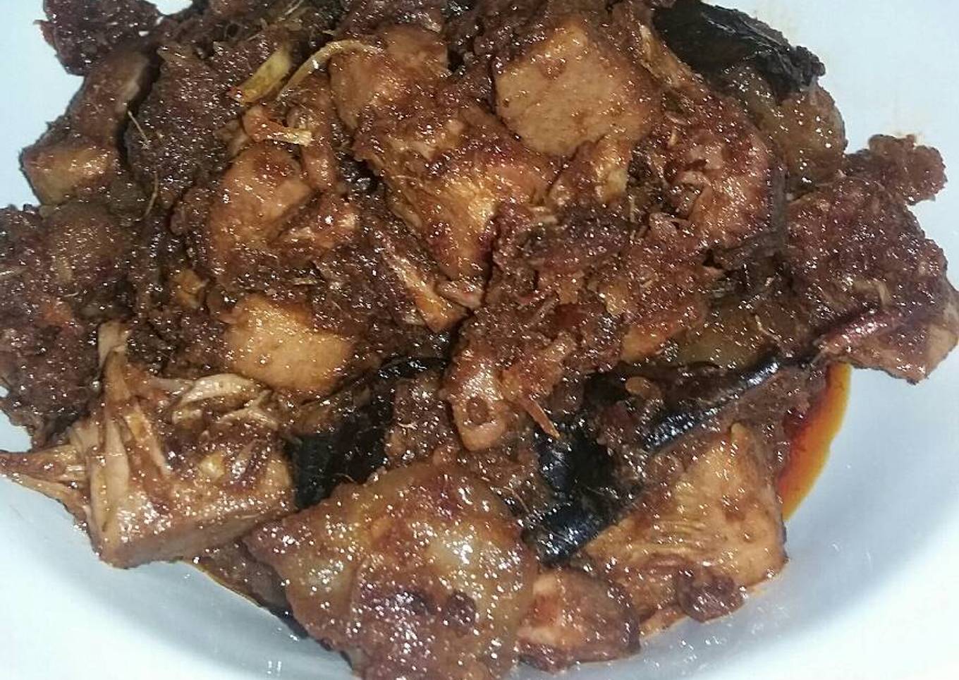 - Kemudian kecilkan api&masak sampai kuah kering&menjadi seperti rendang sambil terus di aduk biar dasar wajan tidak gosong kalau kematangan nya sudah pas matikan api
