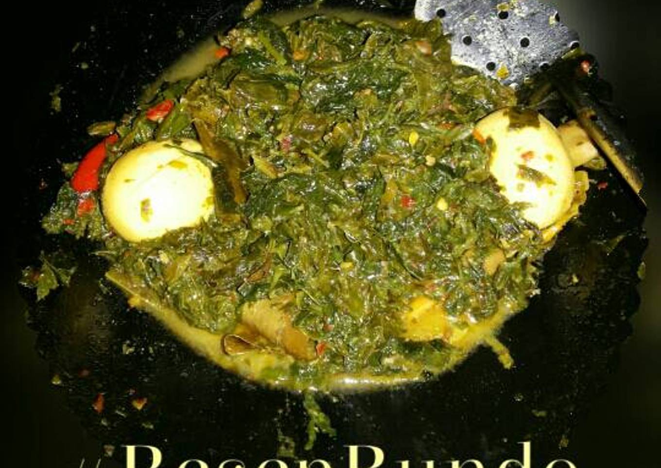 - Masukkan Daun singkong dan telur rebus.aduk hingga rata.lalu koreksi rasa.